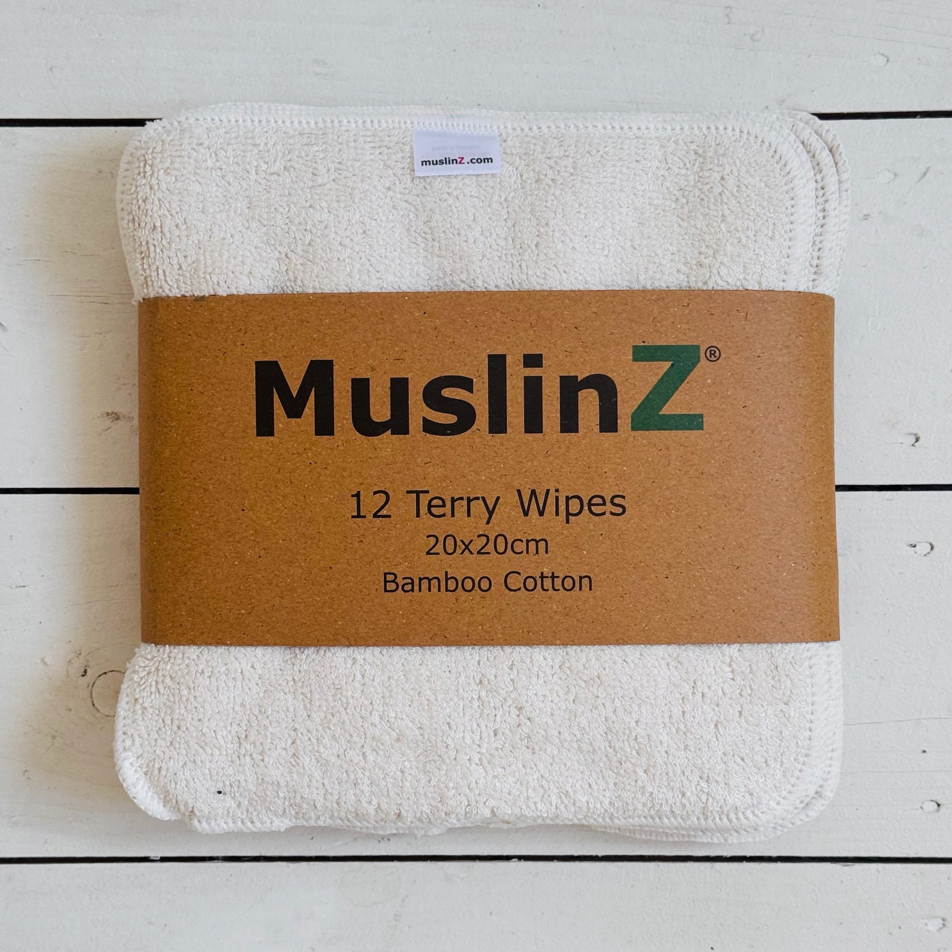 Twelve Pack Bamboo Cotton Terry Wipes 20x20cm