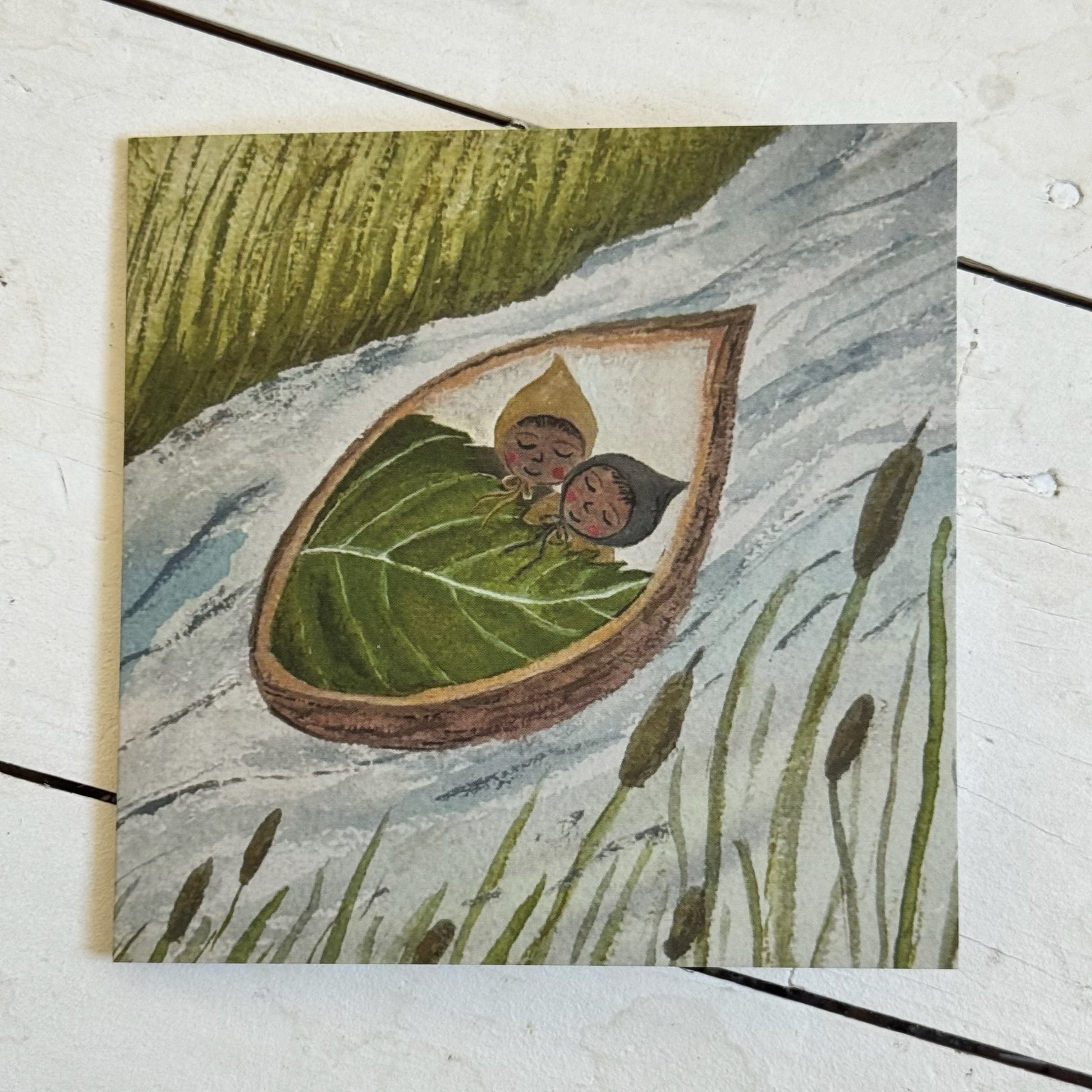This card features a reproduction of an original illustration, designed and painted by me using gouache paint.