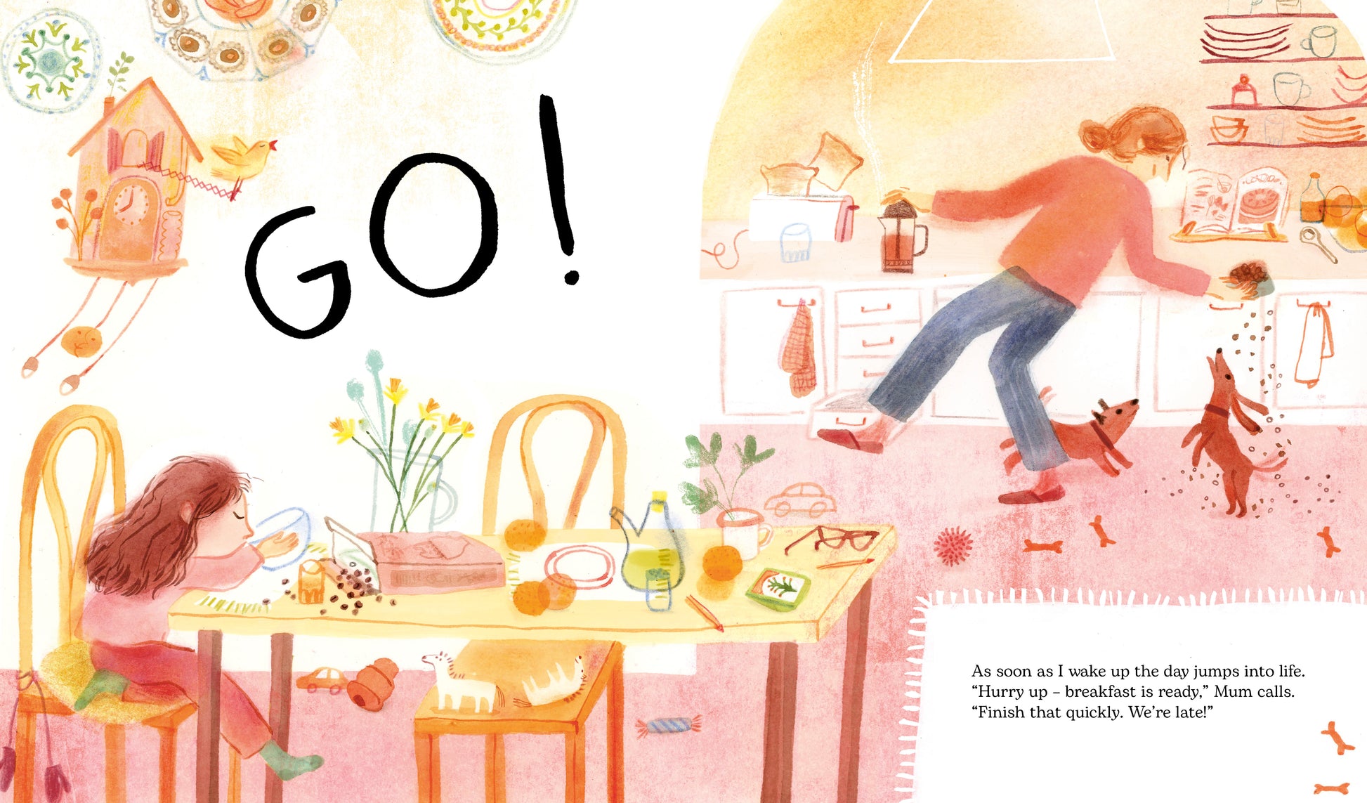 A little girl wishes the time a way as she has to stand in boring queues, endure car journeys and wait for the cake to bake. But what happens when we slow down and enjoy the wait? A lesson to those young and old of the joys of slowing down in this fast paced world.
