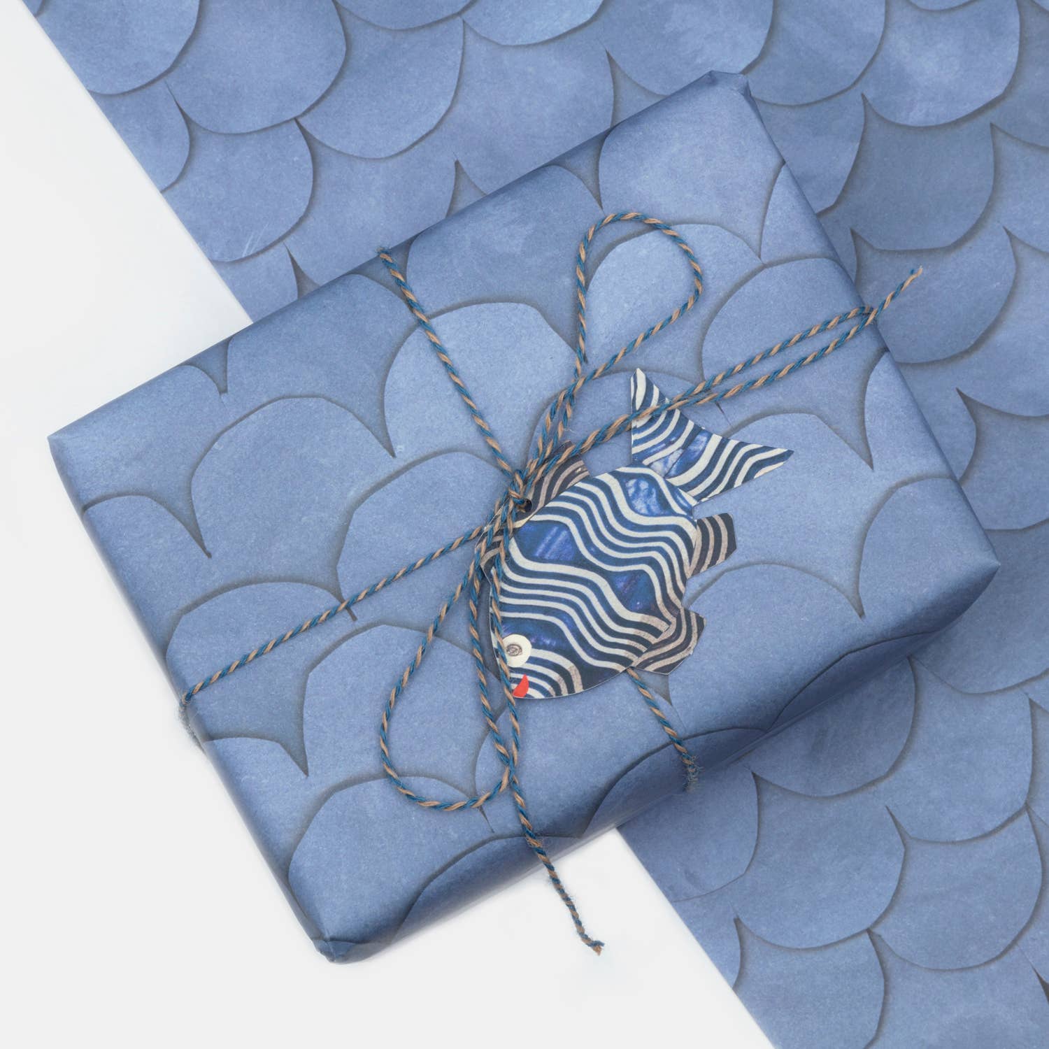 A beautiful blue-grey Mermaid scale design gift wrap. The perfect finishing touch to a gift for the ocean lovers and appreciators of myth and whimsy!
