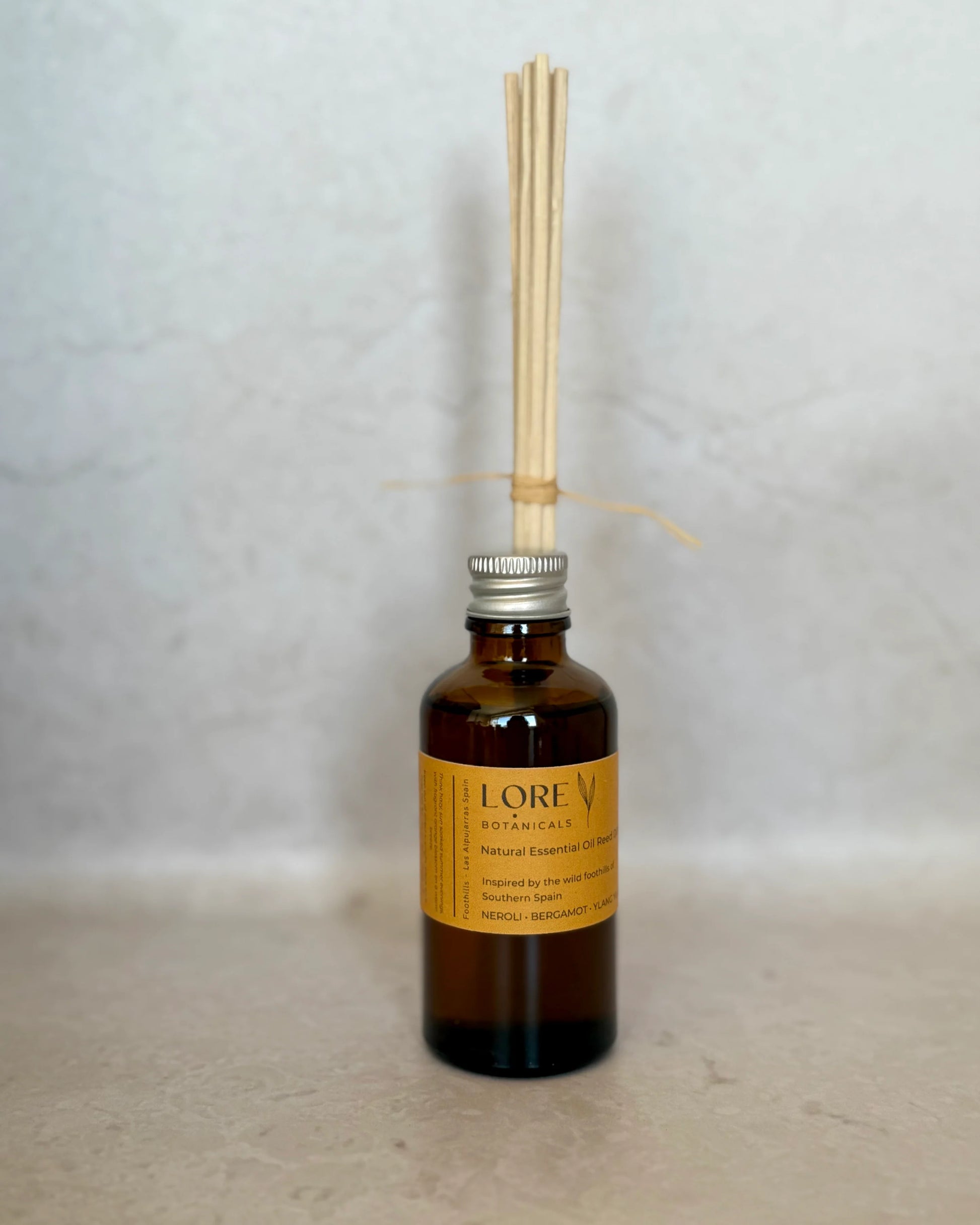 Transport your senses to the sun-drenched hills of Andalusia with this natural essential oil reed diffuser from Lore Botanicals, available at Loving by Nature. Inspired by the wild, aromatic foothills of Las Alpujarras, Spain, this uplifting blend captures the warmth and beauty of long summer evenings filled with the scent of fragrant orange blossom on a soft, hazy breeze.