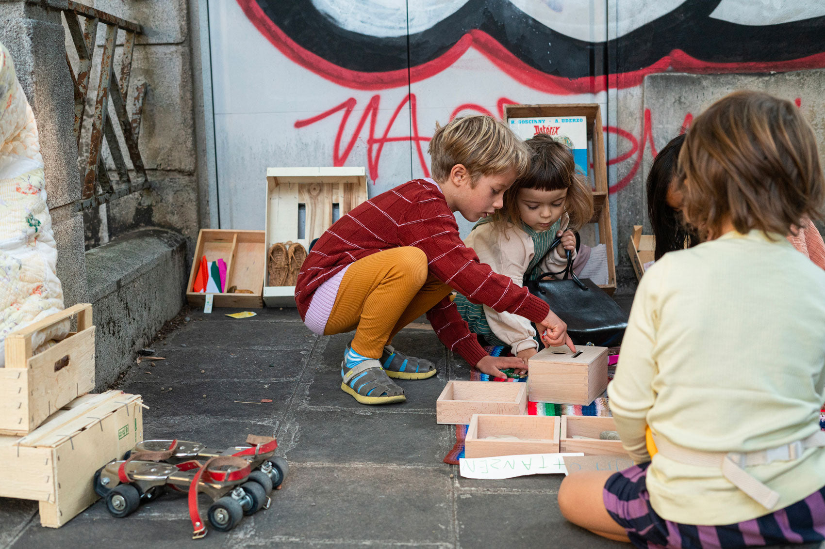 A magic box to fit pieces through, to collect, treasure or exchange. It allows babies and toddlers to navigate themselves through all their learning phases. The box is thought to form knowledge around the principle of permanence, but it’s a great addition to symbolic play all the way to fitting, classifying, colour-matching and… endless more possibilities for you to discover!